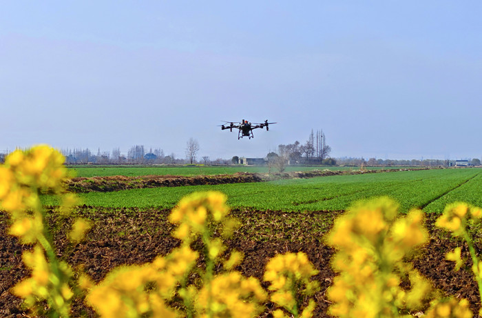 3月9日,大圹圩农场的田间地头,植保无人机低空喷药、农技员俯身查苗、农资运输车往来穿梭,一幅忙碌的春耕图景正在铺展。